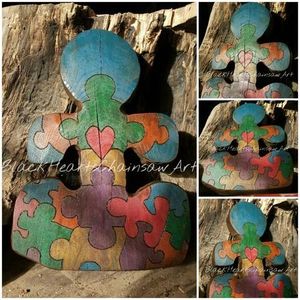 Autism Awareness Puzzle Piece measures 16" tall. Carved out of Elm.